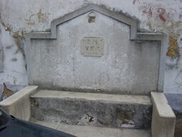 DESCRIÇÃO: Em 2003 temos apenas a estrutura de reboco, uma espécie de frontaria e um banquinho, mas percebe-se que terão sido feitas alterações na própria frontaria onde deveria estar a bica propriamente dita. Na frontaria, podemos visualizar uma placa com as iniciais “CMVFX”, e uma data que se presume ser 1951, mas que terá sido alterada para 1955. Por cima desta placa, terá existido uma outra mais pequena, pois restam ainda vestígios da mesma.